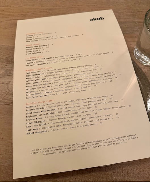 Akub is considered a rare gem and a good introduction to homely Palestinian dishes, although other places have been serving Palestinian food for decades. It is creative yet expressive in what they're achieving, and that is celebrating and treasuring their culture whilst welcoming us with open arms to experience it altogether.