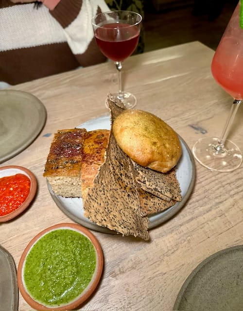 Our bread selections consisted of all three breads that were on offer: za'atar bread, spiced focaccia and nigella seed crackers. Out of the three, I enjoyed the crackers more for the nuttiness of the seeds and the crunch. The za'atar bread fared well with dips; however, we could take or leave the focaccia as it was a bit too doughy.