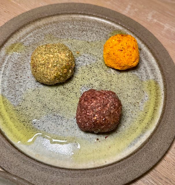 The Labaneh plate came first, which is their homemade labaneh balls rolled in sumac, za'atar and turmeric & Aleppo chilli. I love labneh, and it wasn't bad at all; however, I'm used to a smoother version, and this was pretty dense. It's still moreishly rich and tangy, and I enjoyed the different flavours of each ball.