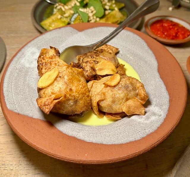 This was Anna's choice – Crunchy Mansaf, which is crispy bread pocket, pulled lamb and rice, laban jameed and fried garlic. It was almost like a pasty, but elevated and well-spiced. The lamb was tender, and the rice wasn't mushy at all. I really liked it.
