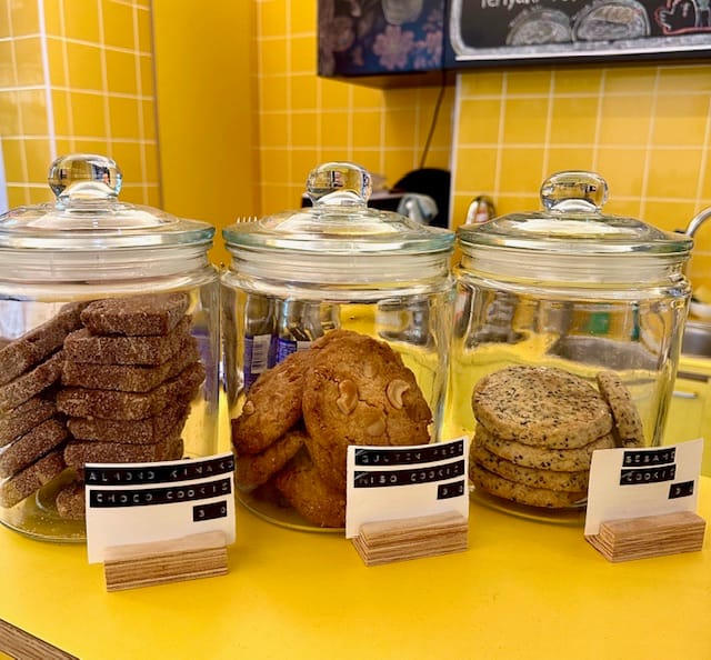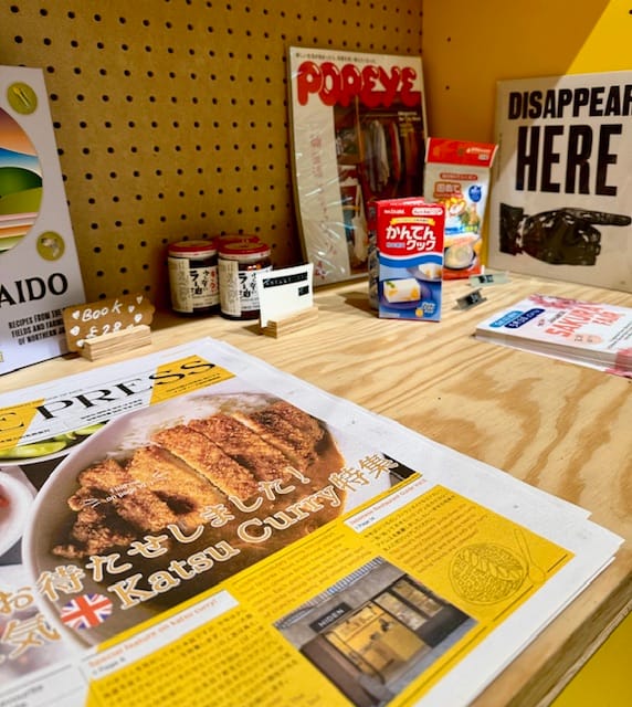 "It’s very yellow!" will always be your first thought upon entering the space, especially compared to its plain black exterior. The interior is warm and cosy, filled with artwork, shelves stacked with knick-knacks (most of which were purchasable), old vinyl records, cookbooks, and displays of those plastic yet incredibly realistic-looking dishes—designed to entice the curious crowd.