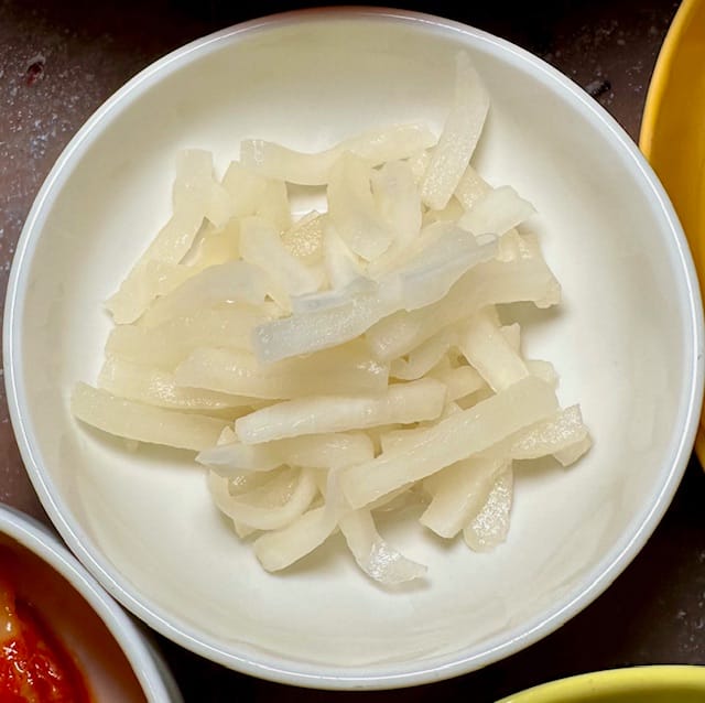 The homemade kimchi and daikon pickles were the perfect palate cleansers—sweet yet tangy, complementing the dishes well. The girls and I couldn’t stop eating them and debated whether we should order more.