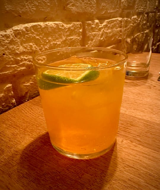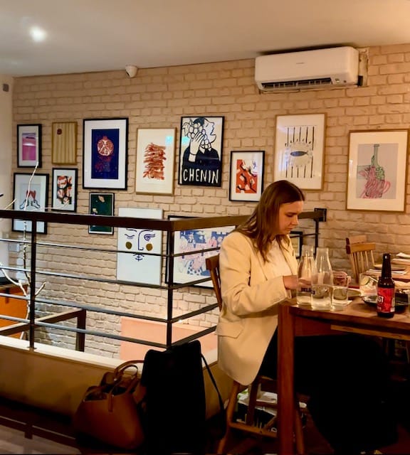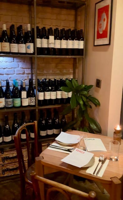 Upon entering, you're greeted by whitewashed brick walls, warm wooden furniture, and thoughtfully placed framed artwork throughout the space. The lights were dimmed, creating that typical East London vibes. The space feels warm yet cosy, and I immediately fell in love with their wine corner—an L-shaped floor-to-ceiling shelving unit filled with carefully selected bottles, accompanied by a lone square table with two chairs facing the street. It's the perfect spot for an intimate first date.