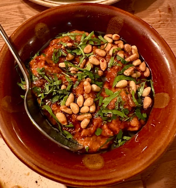 The Muhammara is criminally underrated yet serves as a perfect palate cleanser. Smoky from the roasted red peppers, slightly sweet from the pomegranate molasses, yet toasty with a modest crunch from walnuts and generous pine nuts. It's something I want to learn how to make and make sure I have enough to last me for a week!