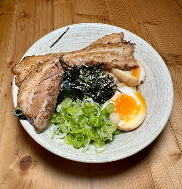 I prefer noodle soup; however, this Pork Belly Abura Soba was delicious—savoury yet comforting. The pork was melt-in-your-mouth, and the noodles were consistently springy. I didn't try the egg as I offered it to others, but they complimented it as being flavourful. A must-order for sure.