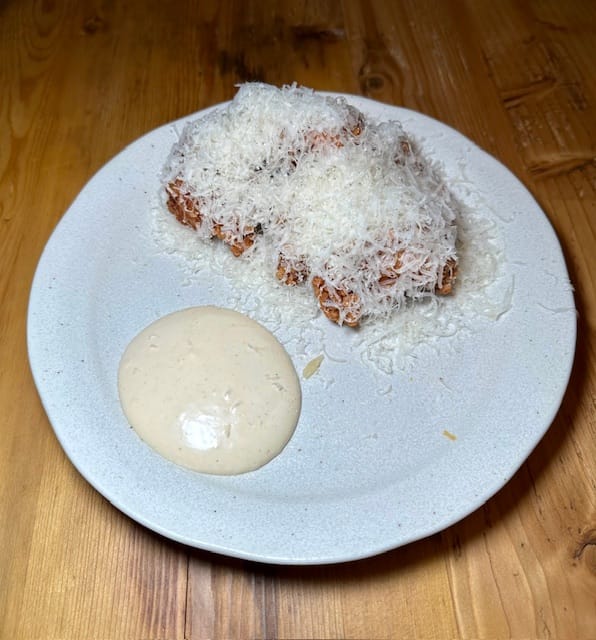 The Japanese Fried Chicken with Dashi Mayo & Parmesan was a sight to behold—a small pile of fried chicken smothered in a mountain of grated parmesan with a generous dollop of mayo. It was seasoned well, fried nicely, and had a good crispy texture. The mayo had depth of umami flavours, and the added parmesan was fun; however, I did need to scrape a lot of it off as it can be overwhelming.